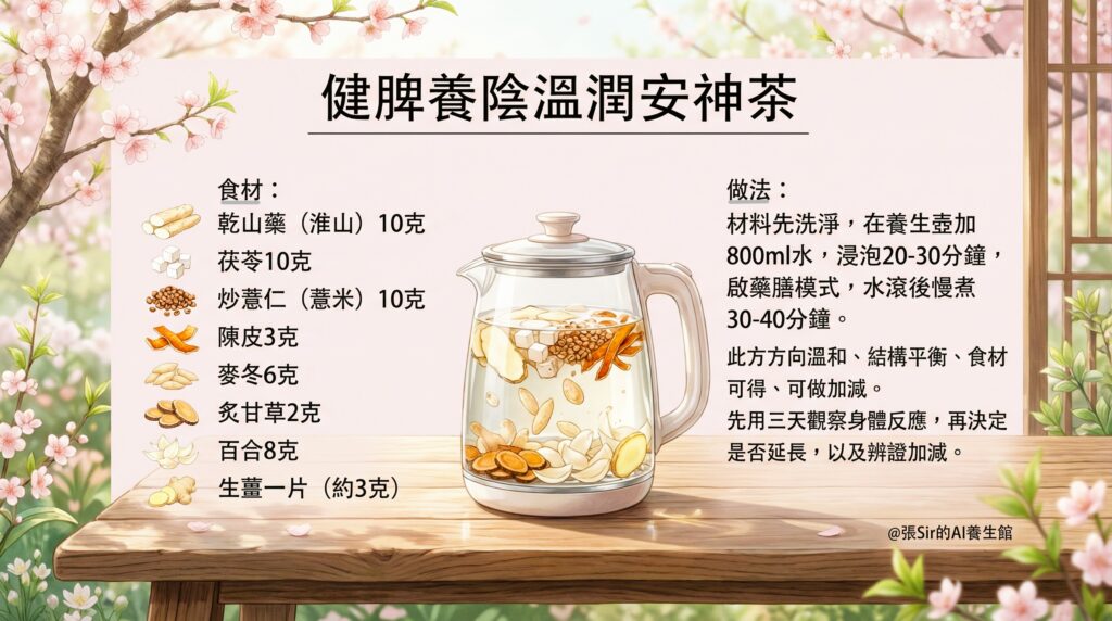 一個「示例模板」:健脾養陰溫潤安神茶